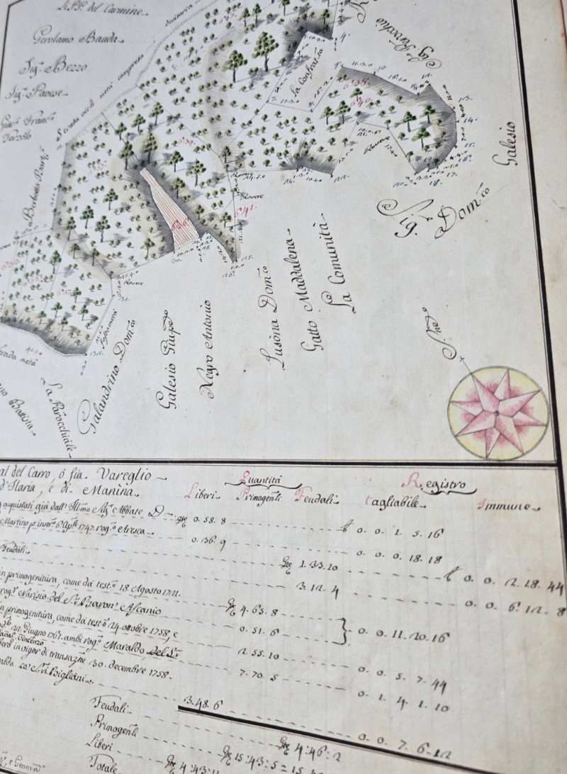 Il Cabreo dei beni appartenenti al barone Luigi Crova di Vaglio, 29 maggio 1769, è stato redatto dall’architetto e geometra PIETRO GIOVANNI PETRINO.